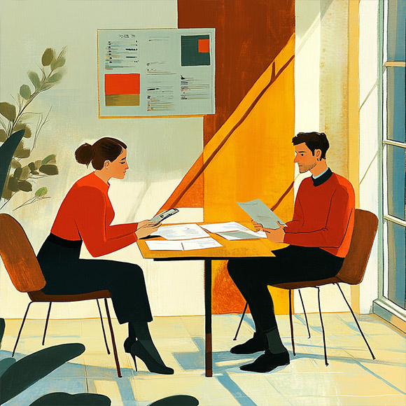 Lakukan perbualan secara dalam talian atau di pejabat, dan tandatangani kontrak.